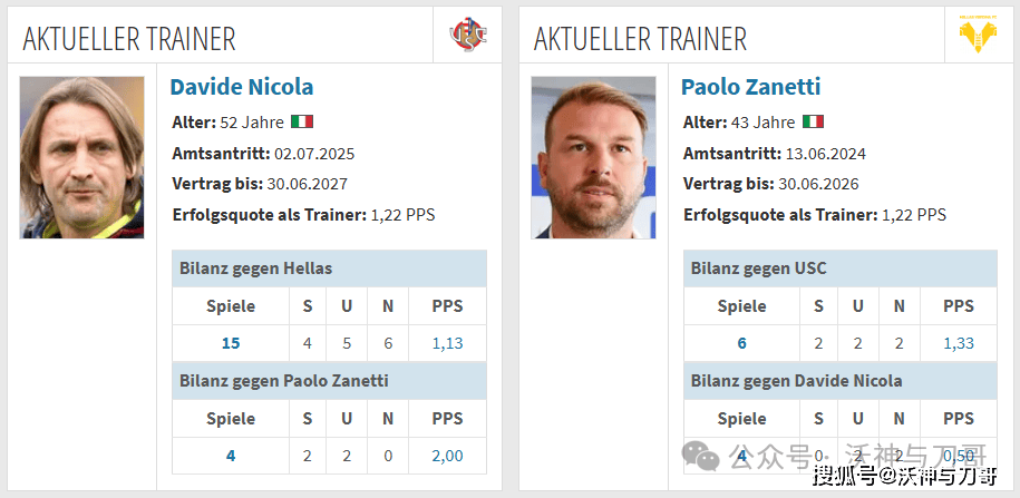 主帅对比:达维德·尼古拉vs保罗·萨内蒂